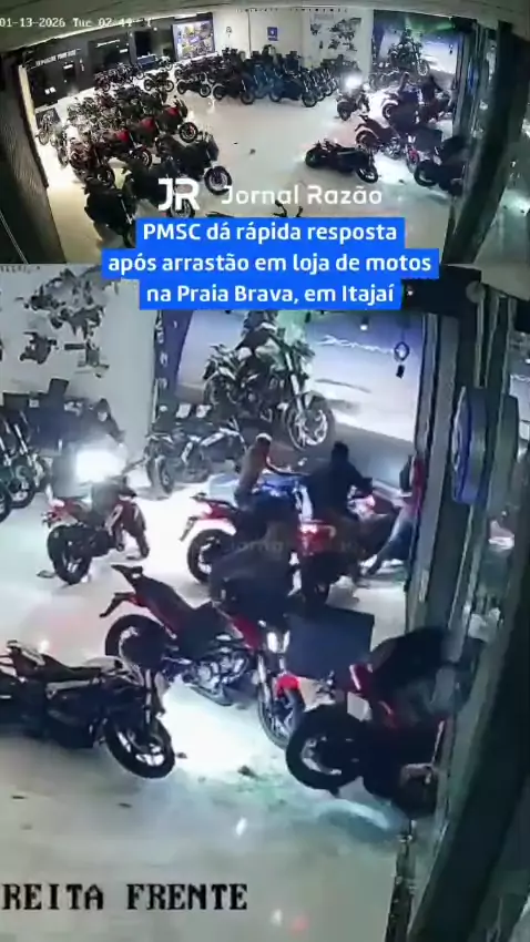 *SANTA CATARINA* Um grupo de criminosos invadiu uma loja de motos na PRAIA BRAVA, em ITAJAÍ, (SC) e levou 12 motocicletas em poucos minutos. Todas estavam com a chave na ignição. A POLÍCIA MILITAR de SANTA CATARINA, (PMSC) agiu rápido, fez buscas na região e conseguiu deter envolvidos. Ao menos oito motocicletas já foram recuperadas. A ocorrência segue em andamento.