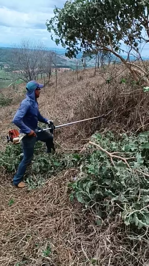 cortando a moita de lobeira no pasto