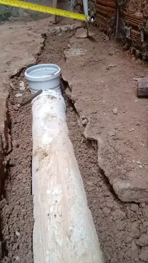Fazendo o encanamento do esgoto do banheiro.