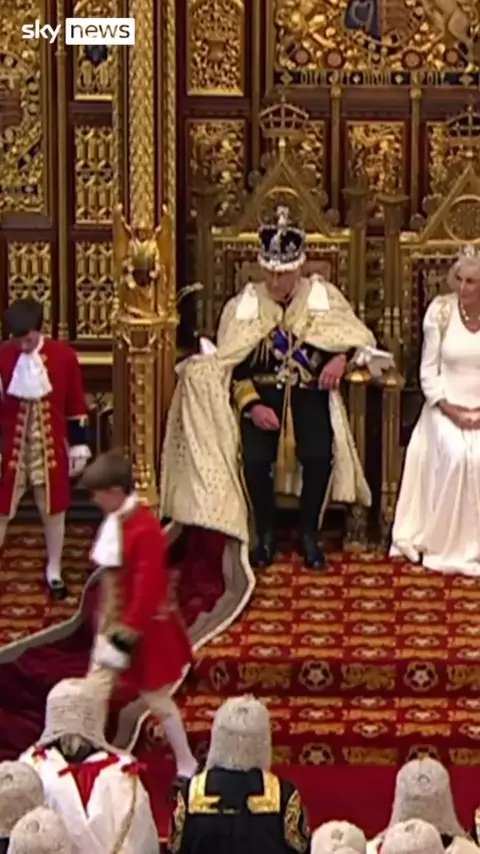 O parasita Carlos III parece frustrado depois que um pajem colocou seu manto sobre o trono.