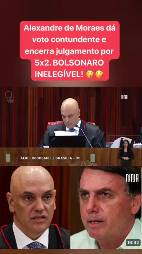 #comentaristadenoticias Alexandre de Moraes dá voto contundente e encerra julgamento por 5x2. BOLSONARO INELEGÍVEL! 🥳🥳