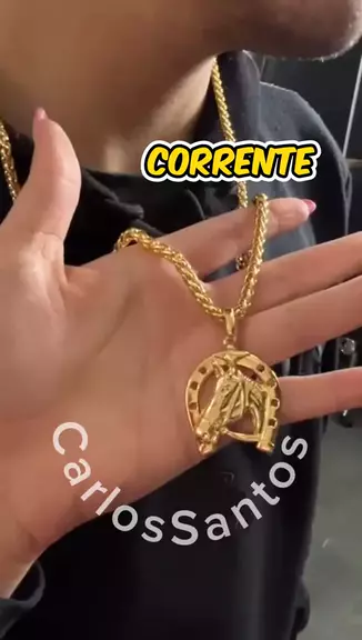 conjunto corrente torcido dourado com pingente de cavalo não escurece no ferrugem #correntepingentecavalo