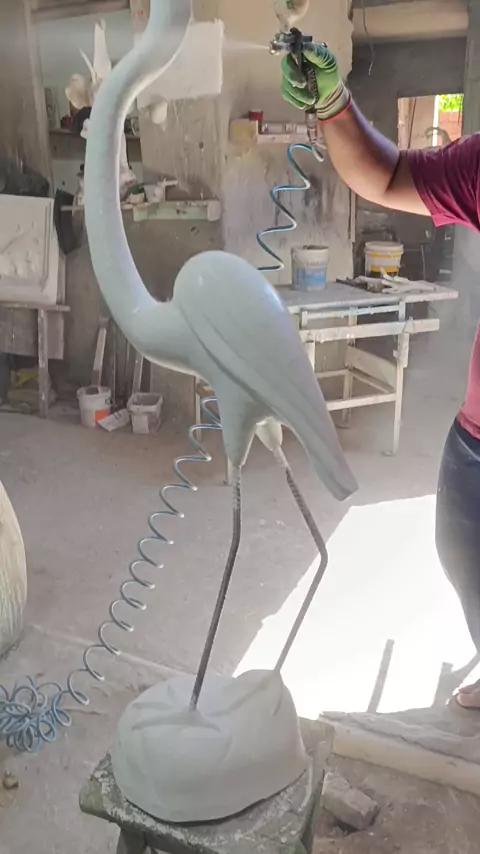 pintando a garça 🙏 #escultura #jardim #artesanatos #artes #viralisakawai