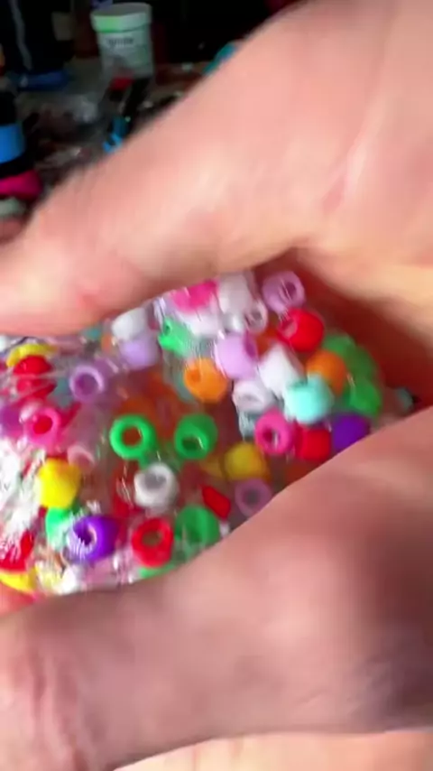 Misturando um único pedaço de glitter em slime, em seguida, misturando contas em slime e finalmente reunindo slime # nickpainting # slime # slimemixing # glitter