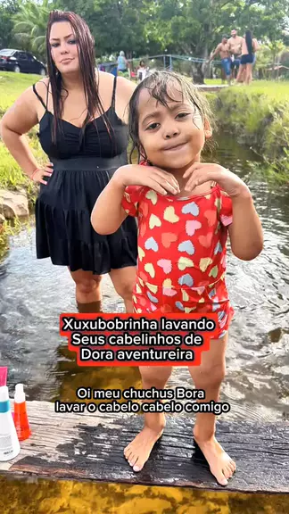 Gente ela tava com essa carinha porque estava banhando no rio a tarde toda kkk ai lavei o cabelo dela pra tirar da água. kkkk