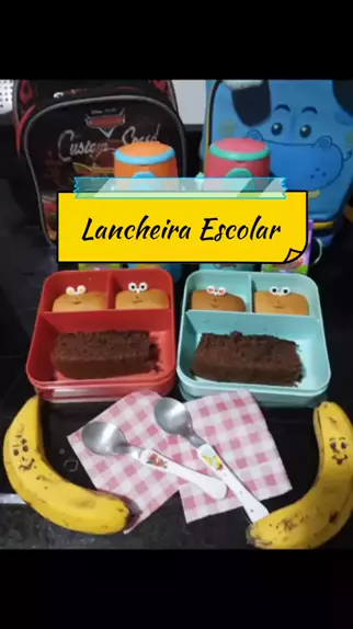 Lancheira de hoje. - Bisnaguinha com Requeijão e Presunto. - Bolo de Chocolate e Nutella. - Banana. - Suco Uva. - Água. #lancheira #lancheirainfantil #lancheiraescolar #lancheiradodia #lancheiradivertida