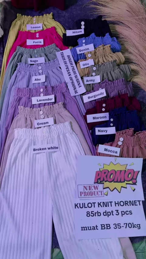 👆Terbaru🔥🔥1x klik beli dpt 3 pcs, Bahan knit hornet tebal adem, max BB 70kg, bebas pilih warna✅ cek tas kuning✅#kulotknitpremium #kulothaigwaist #kulotknithornet #kulotwanitakekinian