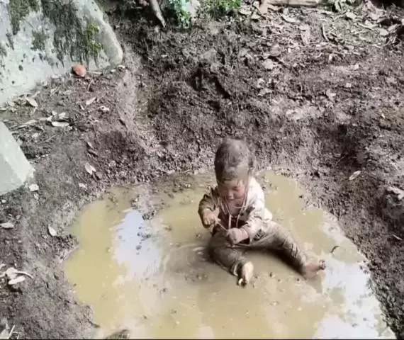 Nossa que judiação deixar esse bebê na lama tadinho povo sem noção 😭