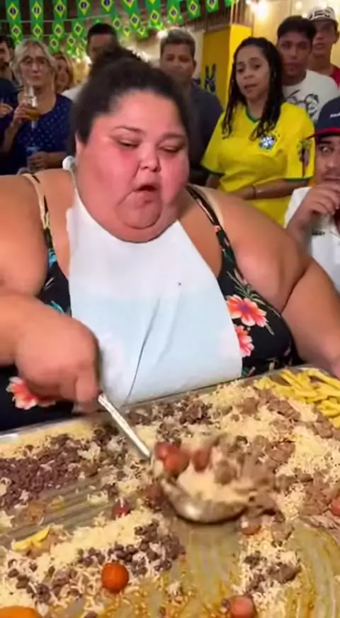 Mulher roliça comendo uma bandeja de comida! #bandeja #comida #roliço