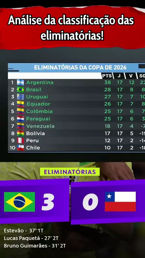 Análise da classificação das eliminatórias #SeleçãoBrasileira #BrasilXChile #brasil #eliminatorias #esporteviral