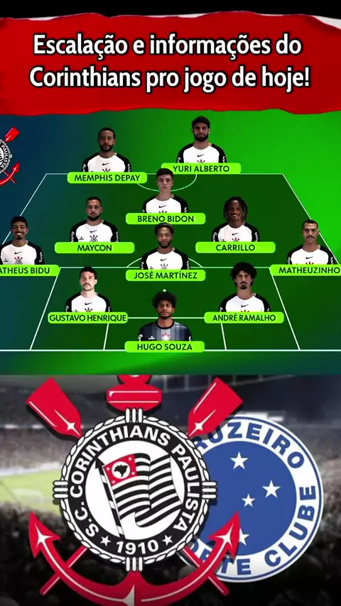 Escalação do Corinthians para enfrentar o Cruzeiro #Corinthians #CorinthiansXCruzeiro #Cruzeiro #copadobrasil #Desafios12