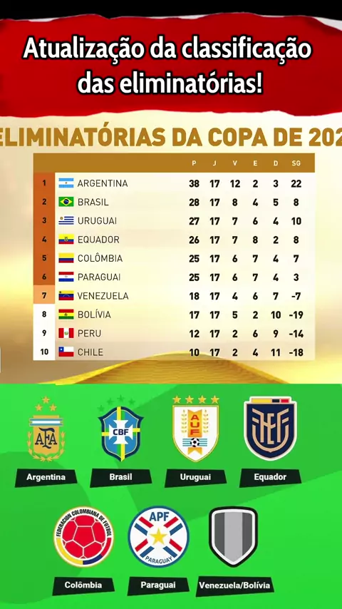 Atualização da classificação das eliminatórias sul-americana #eliminatorias #SeleçãoBrasileira #brasil #Argentina #esporteviral