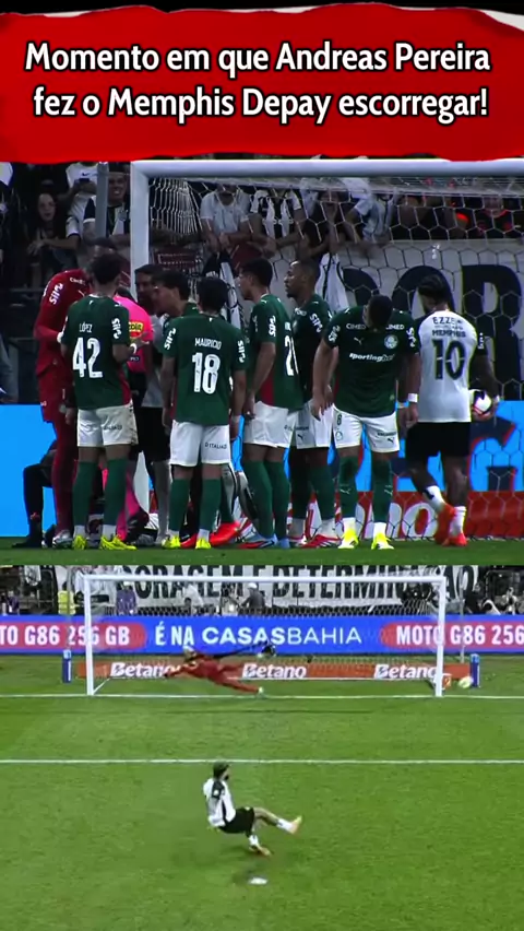 Momento em que Andreas Pereira pisa na marca do pênalti e faz Memphis Depay escorregar #MemphisDepay #andreaspereira #corinthiansxpalmeiras #Corinthians #palmeiras