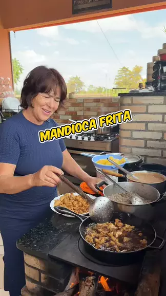 Mandioca frita torresmo e feijão 😋 #Chacaracristal #almoco #mandiocafrita