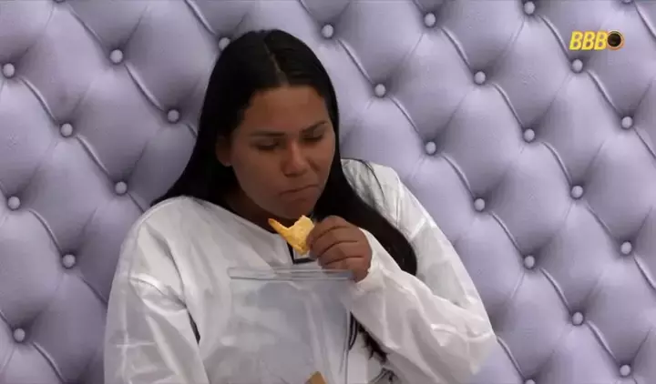 Nossa diva comendo sua bolacha, tomando aguinha de coco e agradecendo: āObrigada Deus!ā š¤ Ela totalmente grata com o pouco que tem! š„¹ #TeamChai | #BBB26 | #QuartoBranco ⢠Reprodução GloboPlay