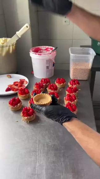 Uma tartalete de morango é uma sobremesa delicada que consiste em uma base crocante de massa amanteigada, recheada com um creme suave, geralmente de confeiteiro, e coberta com morangos frescos e brilhantes. É frequentemente finalizada com uma geleia de brilho para dar um toque de doçura extra e um acabamento lustroso.#tartelete #morango #Doces #sobremesa #receitinhas