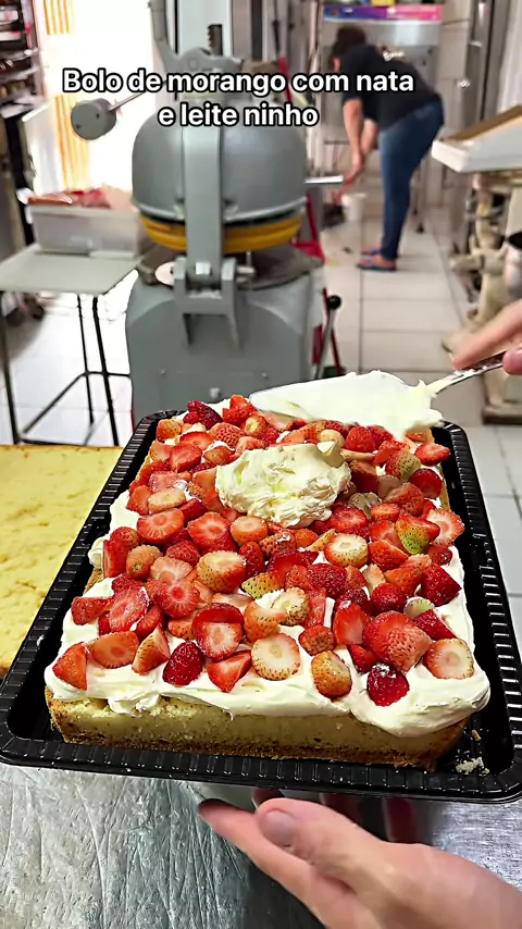 Bolo de morango com nata e leite ninho