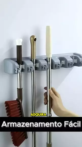 Suporte de Parede Multifuncional: Organização e Praticidade em Casa Multifuncional: Armazena vassouras, rodos e ferramentas. 5 ganchos: Resistente para pendurar diversos itens. Fácil instalação: Adaptável a várias superfícies. Resistente: Construído com materiais duráveis. Design compacto: Ideal para ambientes pequenos. #suporte #multifuncional #vassoura #Organizador #chefD