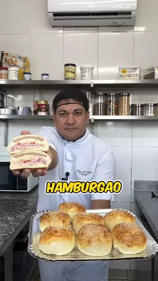 Hambúrguer de Padaria Em uma vasilha, 1kg farinha, 80g açúcar, 10g sal, 60g margarina, 60ml óleo, 2 ovos, 60g fermento fresco, 600ml água gelada e misture bem Corte a massa em tiras, tire pedaços de 90g e vai boleando Deixe descansar por 30 minutos Abre a massa, recheie com hambúrguer, catupiry, mussarela, fatia de tomate, presunto e feche como mostrado no vídeo Pincele o hamburgao com gema e finalize com gergelim Forno 200 graus por 10 minutos #hamburgao #hamburguer #Receita