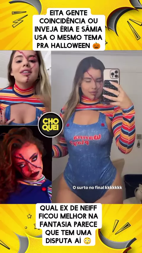 Sâmia biscoiteira e Éria bailarina usam a mesma fantasia no Halloween