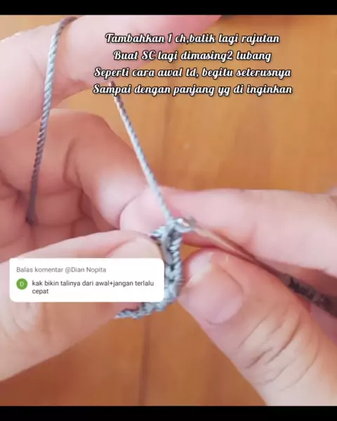 Menanggapi pada @Dian Nopita(O150001480749339) membuat tali tas rajut simple ,hanya SC aja. #rajut #DIY #fyp #handmade #snack