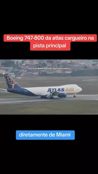 a rainha 747 cargo da altas em Guarulhos pousando na pista principal quando usa pista principal é carga máxima #atlas #747 #Guarulhos #avião #gigante