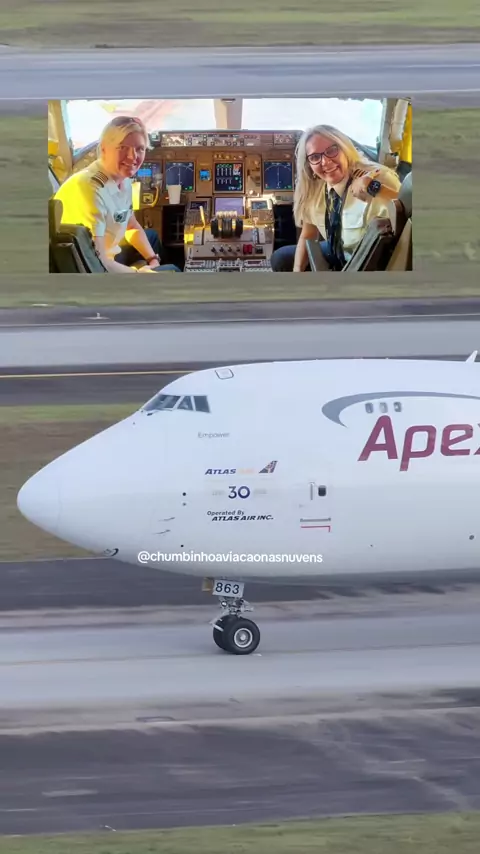 Registro incrível boeing 747-8 da atlas rainha no aeroporto internacional de Guarulhos após a gravação fiquei sabendo que se tratava de comandante e copiloto eram mulher você conhece alguma pilota mulher de avião ? muito legal em saber que as mulheres estão a onde elas querem #Guarulhos #atlas #boeing #747 #avião