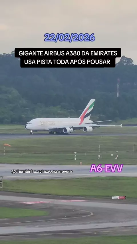 maior avião de passageiros do mundo de dois andares chegando no aeroporto de Guarulhos com multidão apreciando iai você ja viu ele de pertinho #Emirates #Dubai #a380 #gigante #aeroportointernacionaldeguarulhos