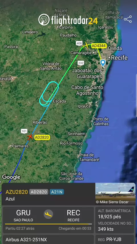 Registro pelo aplicativo flightradar24 com a fonia do tráfego aéreo #panpanpan #a321 #Recife #emergência #viral