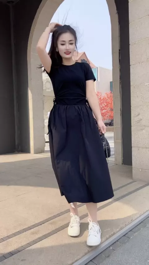 Modis gaya baru lengan pendek gaun # temperamen usia mengurangi gaun