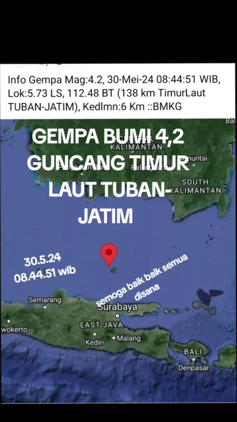 #gempa bumi 4,2 guncang timur laut tuban-jatim