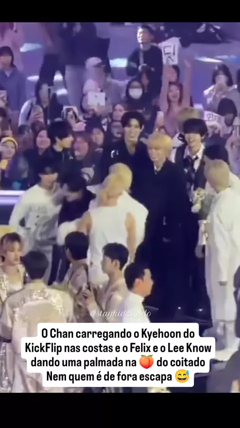até eu pulava nas costas 🤭 cara de sorte ainda mas levando uns tapas no bumbum do Felix e do Lee know 🤣 #Stray kids🖤♥️🤍 15/11/2025