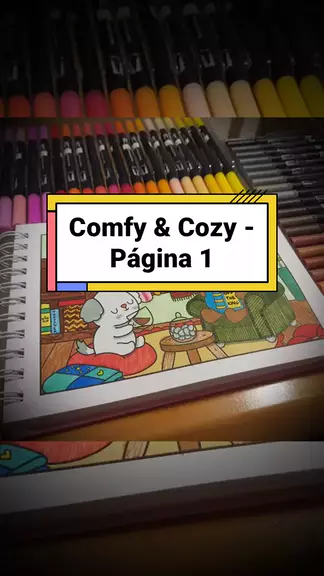 Comfy e cozy | Página 1 completa. Vem colorir comigo a primeira página do meu livrinho. #comfycozy #bobbiegoods #coloring #coloringbook #brushpen