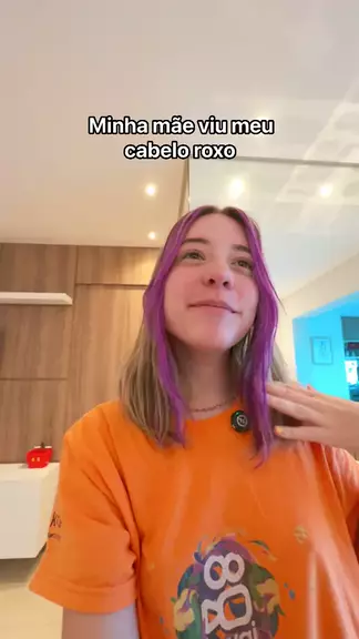 Minha mae vendo meu cabelo roxo