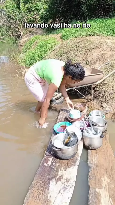 lavando vasilha no rio