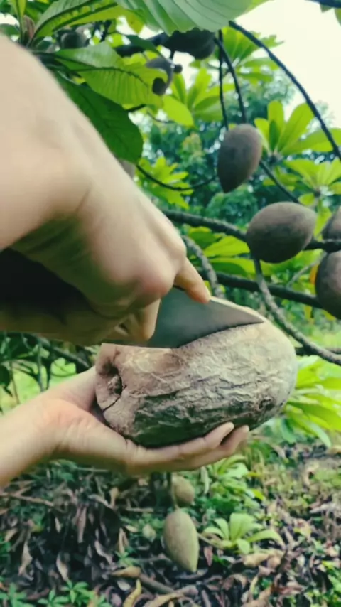 Você já conhecia a fruta mamey ? Uma fruta muito saborosa que parece doce de abóbora 😋😋 horta em apartamento #hortaemapartamento #gardenproject #hortaliças #garden #gardening liça