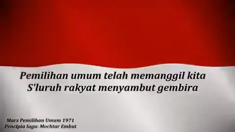 Lagi : Mars Pemilu Pencinta : Mochtar Embut Tahun : 1971 #Pemilu, #Pemilu2024, #Pemilihanumum, #Pemilihanumum2024, #Merahputih,