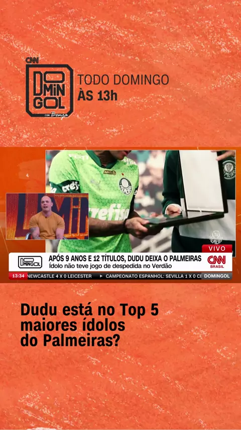 A SAÍDA DO ÍDOLO Pelo Palmeiras, Dudu disputou 462 partidas, com 88 gols marcados e 102 assistências. Ele ainda conquistou 12 títulos, incluindo duas Libertadores e quatro Brasileirões. Mas a pergunta que fica é: em qual patamar da história do Verdão o "Baixola" está? No #DomingolcomBenja, Mano opinou. #CNNEsportes #Futebol #Palmeiras #Dudu