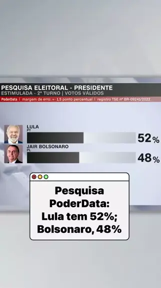 Pesquisa PoderData traz Lula (PT) com 52% das intenções de votos válidos; Bolsonaro (PL) tem 48% #KwaiNotícias #Eleições2022 #CNNnasEleições