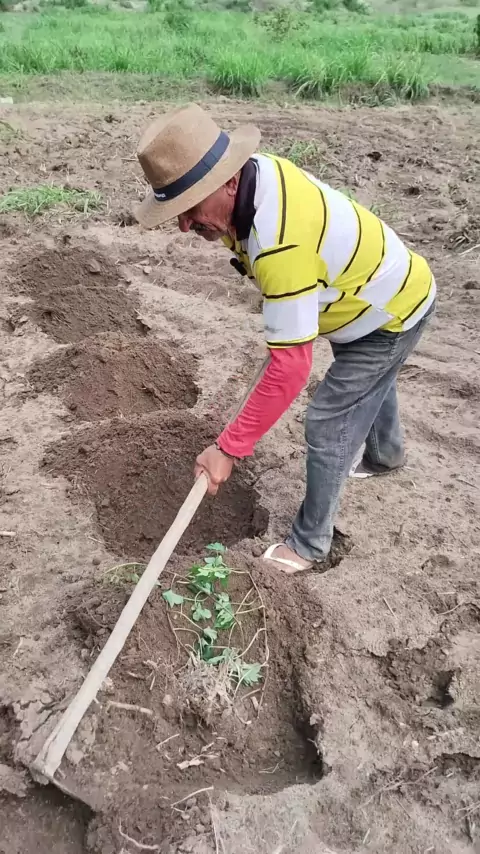 cavando as covas de batata