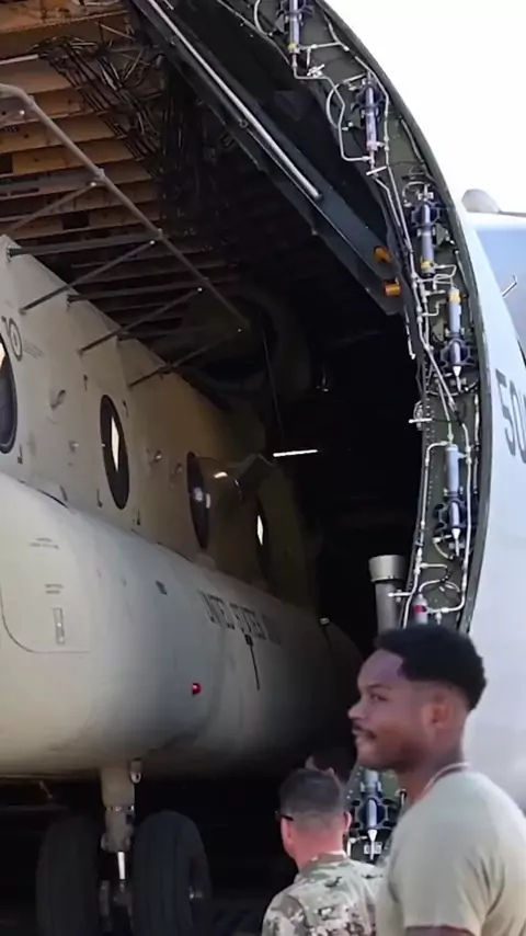 q Assista ao gigante C-5 Galaxy engolir um CH-47 Chinook como se fosse um brinquedo 🚁✈️💥 A demonstração definitiva de poder de transporte aéreo!