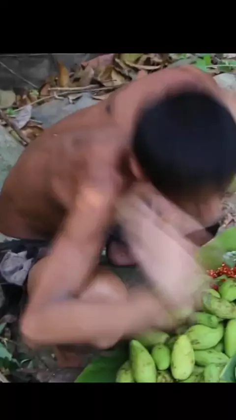 survival life in the forest Eating sour, super spicy mangoes #primitive_technology #challenge #KmengPrey #food_primitive #eat