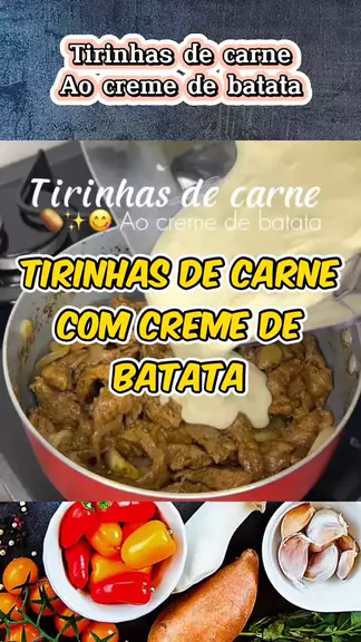 Tirinhas de carne com creme de batatas #Receita #jantar #Top10Fazenda #batata #Strogonoff
