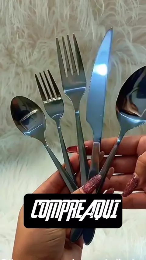 jogo talheres 48 peças aço inox 12 facas 12 garfos de mesa 12 colheres 12 colheres sobremesa #crescernafamilia #compreaqui✔