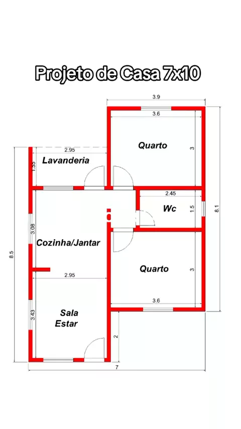 Projeto de Casa 7x10#2quartos#pedreiro#quartoecasa#casadeluxo#casa#plantabaixa#house