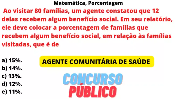 Ao visitar 80 famílias um agente constatou que 12 delas recebem algum benefício social. Em seu