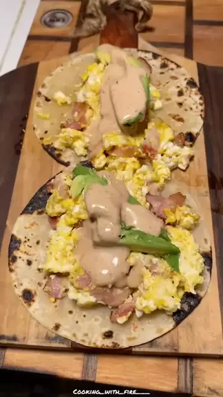 Bacon and eggs tacos for breakfast. #scenesonabudget #fliptheroll #Kwaifood More