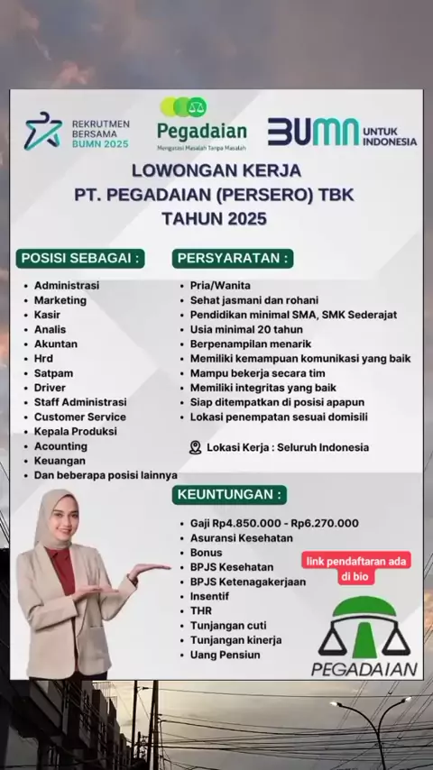 lowongan kerja di PT PEGADAIAN PERSERO #_lewatberanda #lowongankerja #bumn #4uyp #Pegadaian