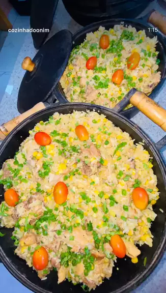 Galinhada, tutu de feijão e salada tropical