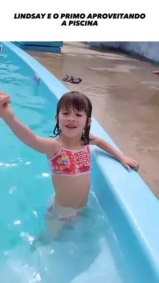 lindsay e o primo na piscina #criança #kids #bebes #diversao #brincadeira